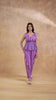 Made from a lightweight, breathable fabric, this set feels soft against the skin and allows ease of movement, making it ideal for warm-weather wear. The rich purple hue paired with contrasting stripes brings a contemporary edge while remaining versatile enough for multiple occasions.